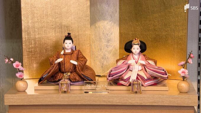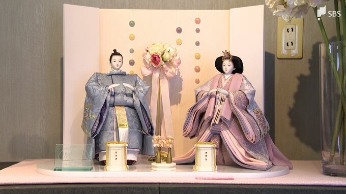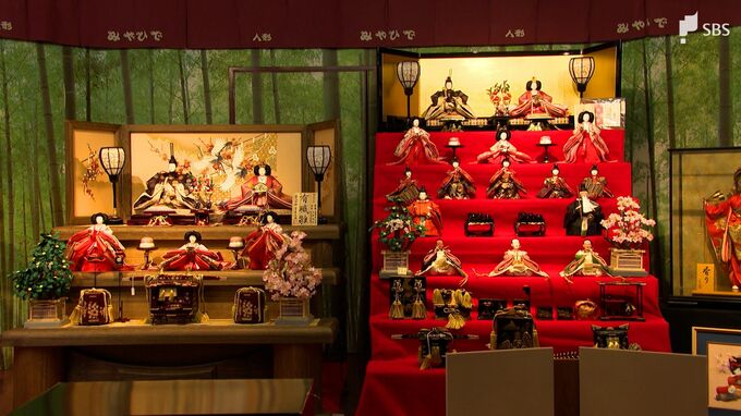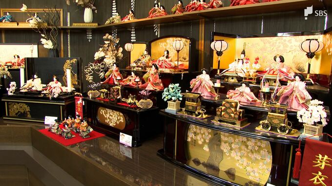 「蒔絵をあしらい、ぼんぼりを飾った伝統的なひな人形もあれば、金髪の人形もあります。早くも、ひな人形商戦が始まっています」