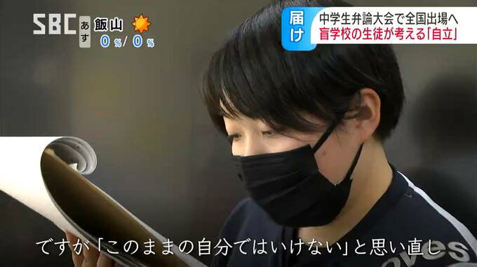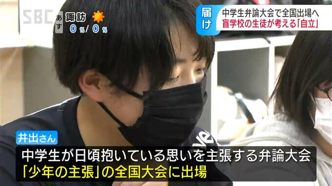 長野市の盲学校の生徒が中学生の弁論大会で、県の代表として12日に東京で開かれる全国大会への出場を決めました。