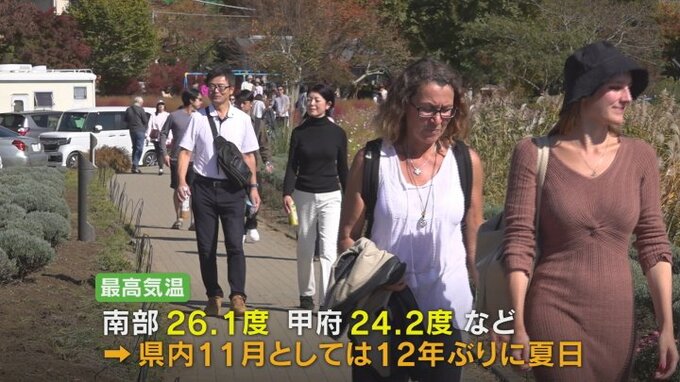 最高気温は南部で26.1℃、甲府で24.2℃などとなり、南部は県内では11月としては12年ぶりに25℃を超える夏日となりました。