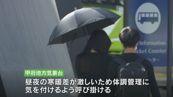 3日の予想最高気温は南部で27℃、甲府で25℃、河口湖で24℃となっていて甲府地方気象台は昼と夜の寒暖差が激しいため、体調管理に気を付けるよう呼びかけています。