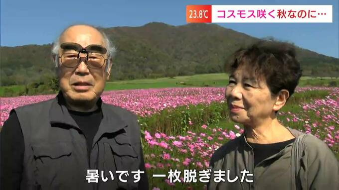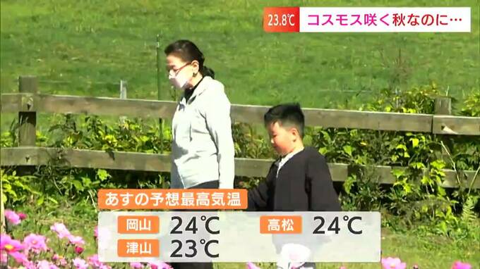 一方、岡山県北・真庭市の上長田でも11月の最高気温の記録を更新しました。コスモスが見ごろを迎え、観光客でにぎわう蒜山高原でも薄着の人が目立ちました。