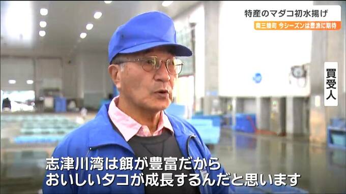2日のマダコの水揚げ量は、去年の初日の4倍近い13トンあまりにのぼり、去年より3割弱安い1キロあたり平均1241円で取り引きされました。南三陸町のマダコ漁は来年3月末まで行われます。