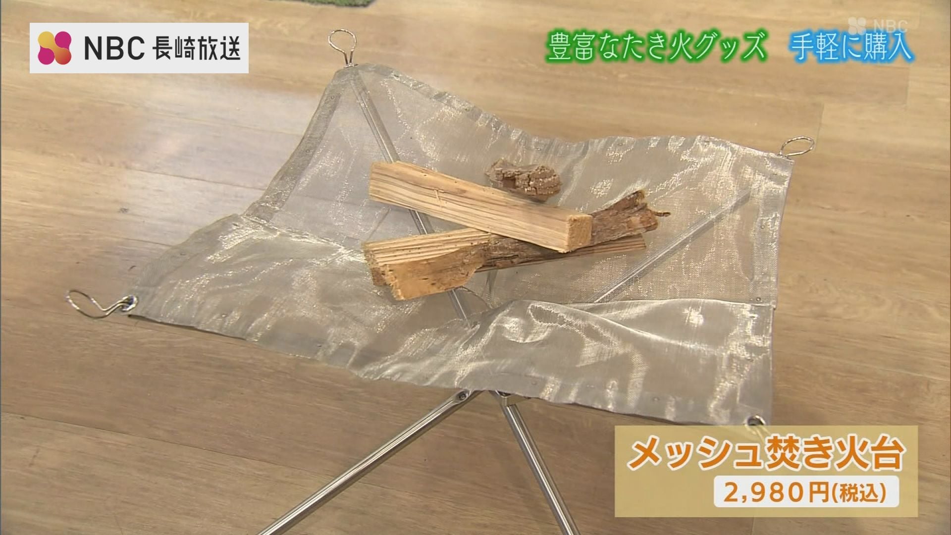 他にもステンレスなどのメッシュシートとパイプスタンドを組み合わせた収納しやすい焚き火台『メッシュ焚き火台(2,980円税込み)』もあります。