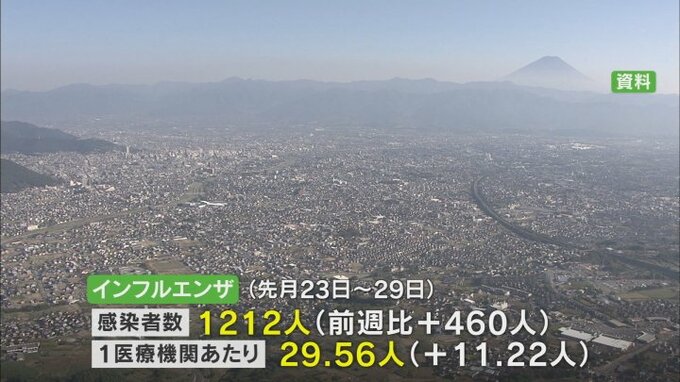 インフルエンザについて山梨県全体の1週間の感染報告数は1200人を超えました。県などは甲府市と中北地域の流行が「警報レベル」に入ったと発表しました。