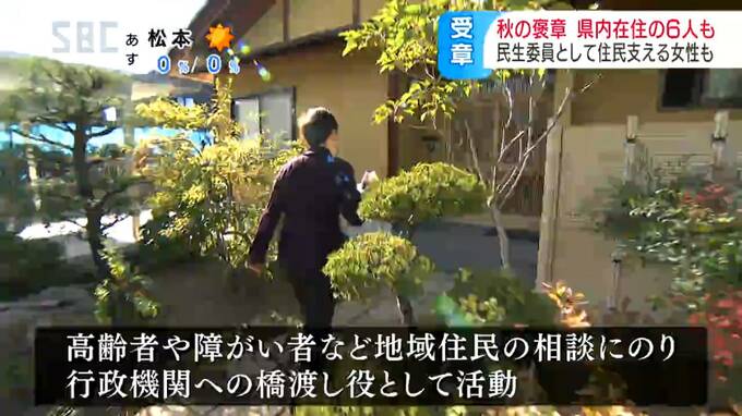 このうち、須坂市の民生児童委員協議会の会長を務める永田繁江(ながたしげえ)さん75歳は藍綬褒章を受章しました。
