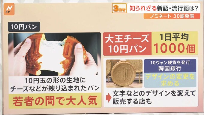 続いてNスタスタッフ75%が知っていて、港区・赤坂で聞くと40%しか知らなかったのが「10円パン」。10円玉の形の生地で、チーズが入っているパンです。若者の間で大変人気ということです。