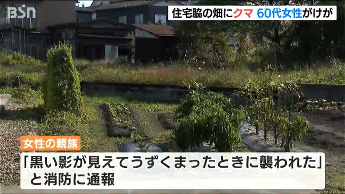 警察や消防によりますと、3日午前6時40分ごろ、60代の女性が自宅脇の畑で農作業をしていたところ、体長およそ1メートルのクマが突然出てきて襲われたということです。