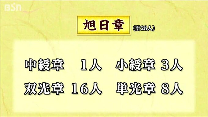 旭日小綬章は、元・燕市議の大岩勉さん、元・県薬剤師会会長の長澤敬一さん、元・県医師会会長の渡部透さんが受章します。