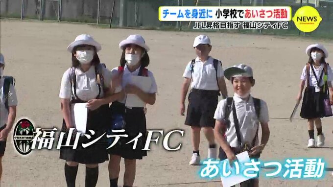 チームを身近に感じてもらおうと、中国サッカーリーグ所属の福山シティFCが、地元の子どもたちに向けてあいさつ活動をしました。広島県福山市神辺町の竹尋小学校であいさつ活動をしたのは、福山シティFCの選手たち…