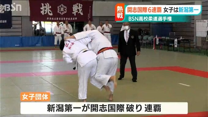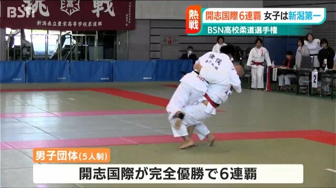 柔道のBSN高校選手権大会が開幕し、男子団体戦は開志国際が6連覇を果たしました。