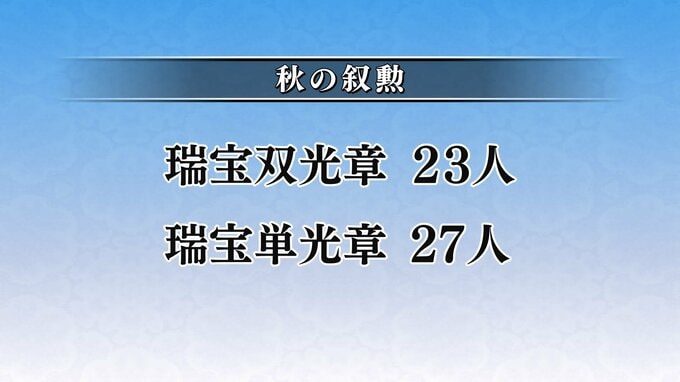 顕著な功績をあげた人などに贈られる秋の『叙勲』が発表され、青森県関係では68人の受章が決まりました。様々な分野で顕著な功績を挙げた人に贈られる「旭日章」は、小綬章に青森県自動車整備振興会副会長などを務…