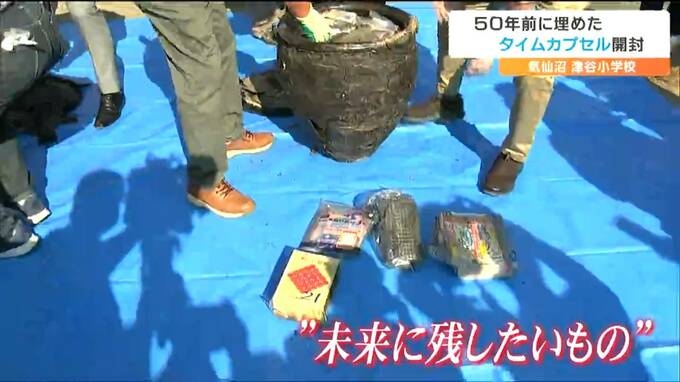 思い出の品が出てきました。宮城県気仙沼市の津谷小学校で、50年前に埋められたタイムカプセルが卒業生の手によって開封されました。