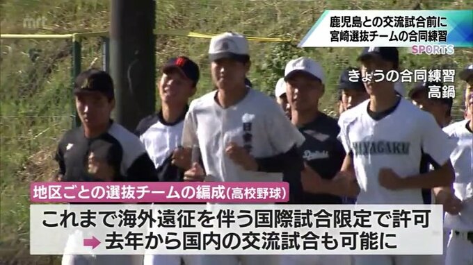 高校野球の宮崎と鹿児島、それぞれの県選抜チームが対戦する交流試合を前に、宮崎県選抜チームの合同練習が高鍋町でありました。高校野球の地区ごとの選抜チームの編成は、これまで海外遠征を伴う国際試合に限り許…