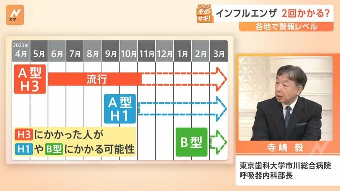 今流行ってるのは、「A型のH3」ですけれども、東南アジアなどでは「A型のH1」が流行しております。一つにかかっても、その後別のタイプの流行があるとかかる可能性がありますし、さらに例年は春先にB型が流行することもあるので、やはり複数回感染するということはあり得ます。