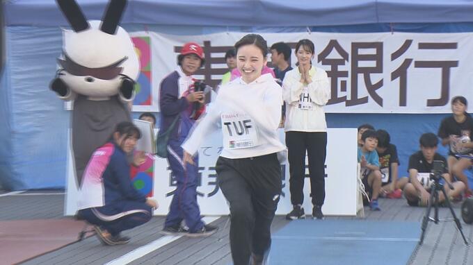 名物企画!県内5つのテレビ局のアナウンサーが参加する、キャスターダッシュも行われました。