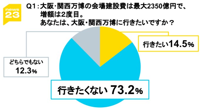 ▽大阪・関西万博について、約7割の人たちが【行きたくない】と回答。【行きたい】という回答は1割強にとどまりました。