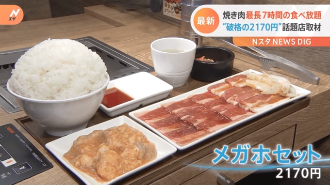 「焼肉ライク」が6月27日から一部の店舗で始めたのが「食べ放題」。その名も「メガホセット」!食べ放題できるのは「バラカルビ」「豚カルビ」「牛ホルモン」の3種類。さらに、「ご飯」などがついて、お値段は2170円。