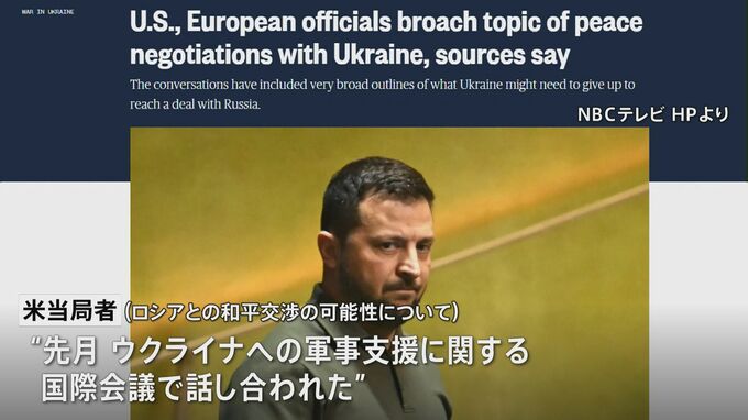 ウクライナを支援する欧米諸国が、ウクライナ側とロシアとの和平交渉の可能性について密かに協議を開始したと、アメリカメディアが報じました。これは、アメリカ当局者の話として、NBCテレビが伝えたもので、先月…