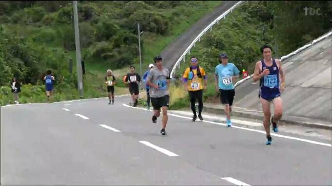 参加したランナーは大島の島民の声援を受けながらアップダウンが続くコースを駆け抜け爽やかな汗を流していました。