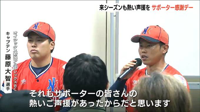 5日、プロ野球独立リーグ・ルートインBCリーグの、オイシックス新潟アルビレックス・ベースボール・クラブは『サポーター感謝デー』を開き、「来シーズンも熱い声援を」と呼び掛けました。