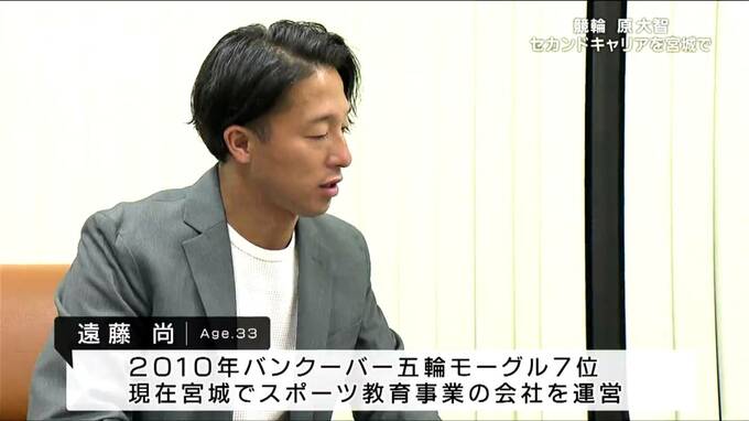 自身も選手として活躍した遠藤さんは、モーグル時代の原選手をコーチとして支えました。現在、宮城でスポーツ教育事業の会社を運営しています。