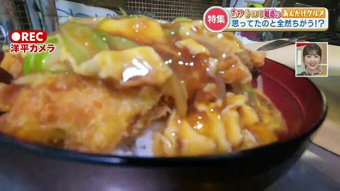 リポーター「思っていたカツ丼とは全然違う感じがします。あんの絡み方がすごい。コクがあるけれど、あっさりめのタレだと思うんですよ。このタレがあんになることによって、気持ちよくストレートにガツッと感じてくる」