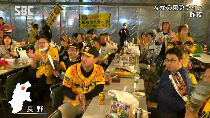 長野市吉田のながの東急ライフで5日夜に開かれたパブリックビューイングには、およそ70人の阪神ファンが訪れ、声援を送りました。
