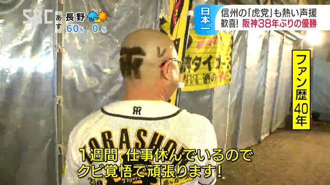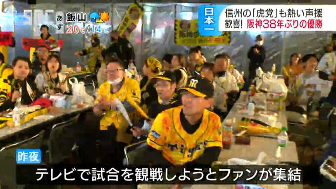 勝てば優勝が決まる大一番、およそ70人の信州の「虎党」が声援を送ります。
