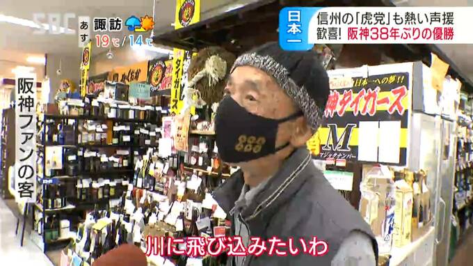 38年ぶりの歓喜から一夜明けた6日、長野市吉田の酒店「かくおか」では、阪神の優勝を祝うセールが始まりました。