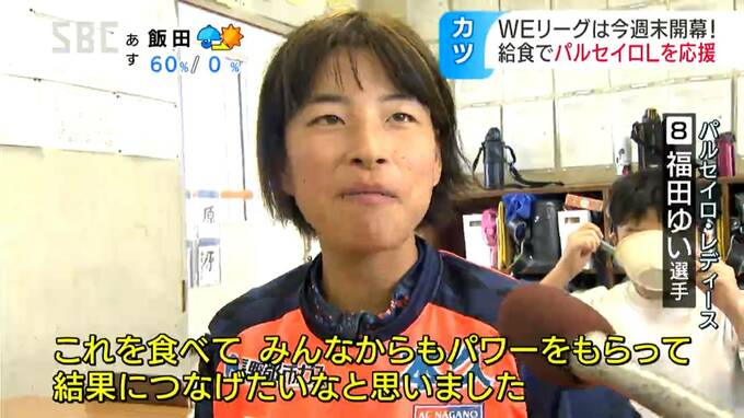 AC長野パルセイロ・レディースが所属する女子プロサッカーの「WEリーグ」が11日に開幕するのを前に、長野市内の小学校14校で応援献立が提供されました。