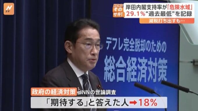 岸田内閣の支持率が「危険水域」と呼ばれる30%を切ったことが、JNNの世論調査で分かりました。岸田総理「経済!経済!経済!」臨時国会で経済重視の姿勢を打ち出してから2週間。先週には、新たな経済対策を決定し…