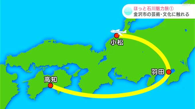 「高知から飛行機を乗り継ぎおよそ3時間半、石川県の小松空港に着きました。ここ石川県は加賀百万石の歴史や伝統文化、芸能が多い魅力あふれるエリアです。今回、その魅力に迫ってみたいと思います」
