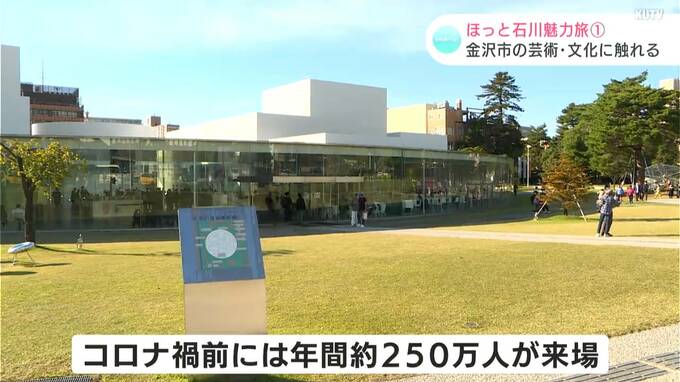 まず最初に向かったのは、金沢市の中心部にある金沢21世紀美術館。コロナ禍前には年間で約250万人が来場し、全国の美術館・博物館の中でも来場者数がトップ5に入る施設です。誰もが入りやすい、開かれた美術館をコンセプトにしています。