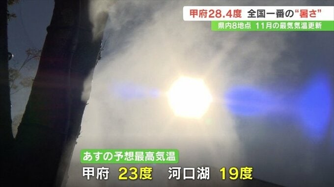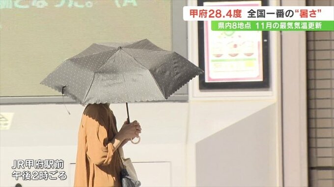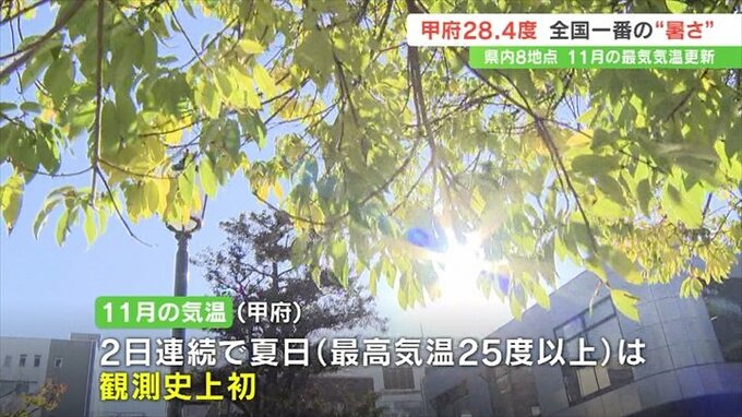 甲府は6日に続き最高気温が25度を超える夏日で、11月に2日連続で夏日になったのは観測史上初めてです。