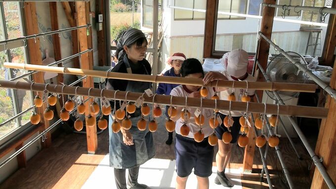 岡山県矢掛町の小学生が干し柿づくりに挑戦しました。地域の特産品を子どもたちに知ってもらおうというこの時期恒例の体験授業です。秋の深まりを感じさせるオレンジ色の柿です。岡山県矢掛町の農園を地元の小学3…