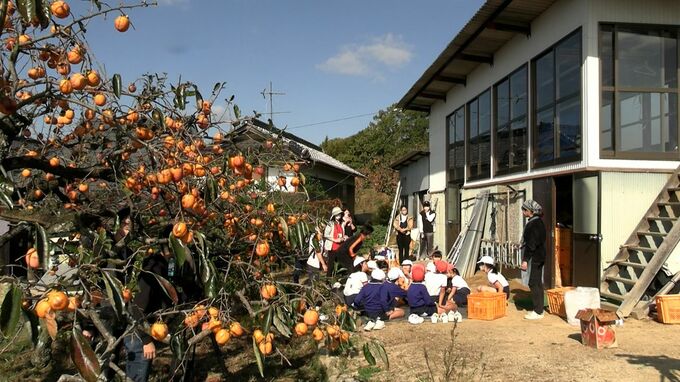 岡山県矢掛町の小学生が干し柿づくりに挑戦しました。地域の特産品を子どもたちに知ってもらおうというこの時期恒例の体験授業です。
