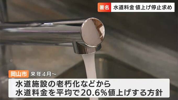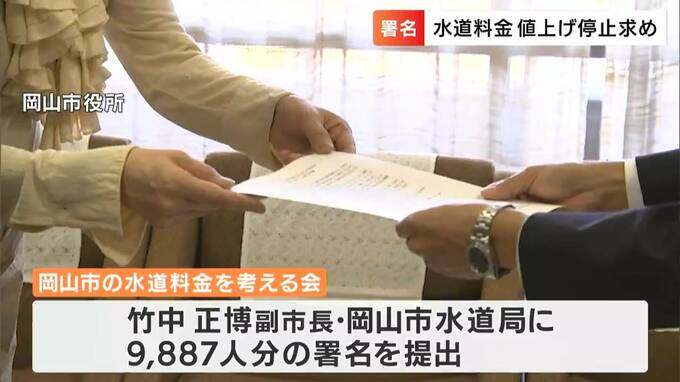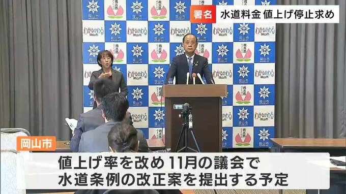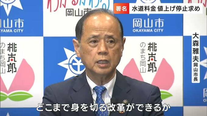 岡山市は2024年度から水道料金を値上げする検討を進めていますが、これに反対する市民団体が新たに約1万人分の署名を提出しました。一方、大森市長は値上げ率を下げる方向で議論を進めていることを明らかにしました。