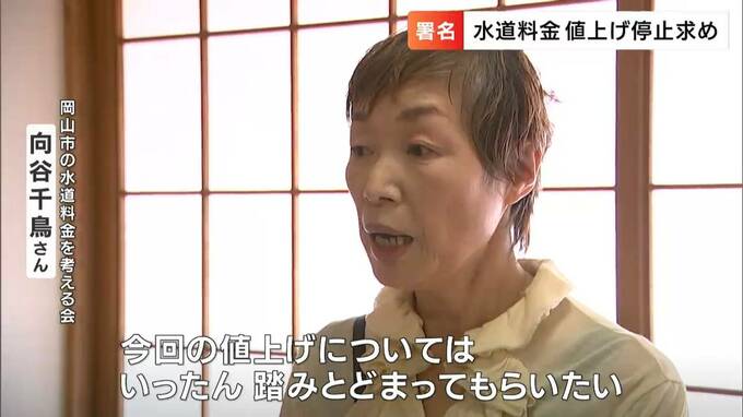 (岡山市の水道料金を考える会・向谷千鳥さん)「今回の値上げについては、いったん踏みとどまってもらいたい。市民の皆さんに広く周知されて、それでもやむをえない、水道料金を上げないと仕方がないねとなったときに、市民と膝を突き合わせるような暇がほしい」