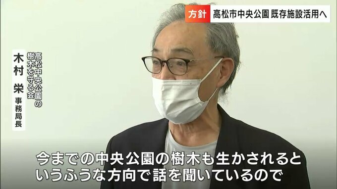 (高松中央公園の樹木を守る会 木村栄事務局長)「今までの中央公園の樹木も活かされるというふうな方向で話を聞いておりますんで、われわれにとってはいい方向に話が進んでいるのではないかと」