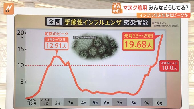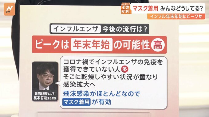 さらに、インフルエンザ流行のピークについて、国際医療福祉大学の松本哲哉主任教授によりますと、「ピークは年末年始の可能性が高い」ということなんです。