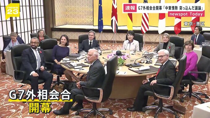 G7=主要7か国の外相会合が、きょうから東京都内で始まりました。上川陽子外務大臣「事態が刻一刻と動き、緊張が日増しに高まる中、また世界の分断が深まる中で、中東情勢についてG7外相間で非常に率直かつ突っ込ん…