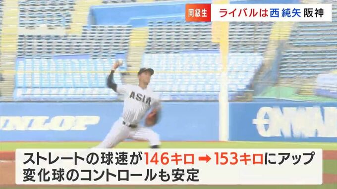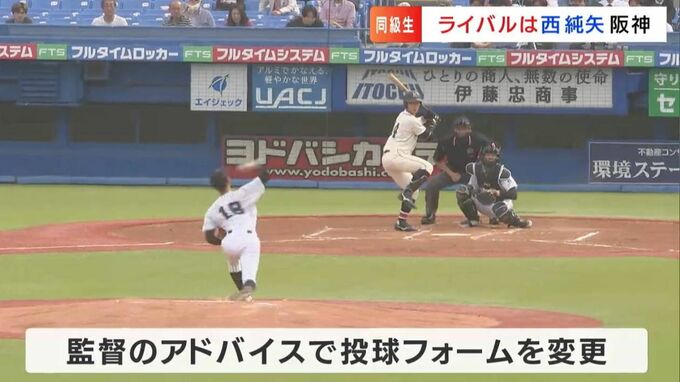 「先にプロ野球の世界に入って、自分は大学に進学して、別々の道になったのですが、西投手がテレビで活躍している姿を見るのは自分の刺激にもなりました。西投手を超えることを一つの目標にして頑張ってきました」