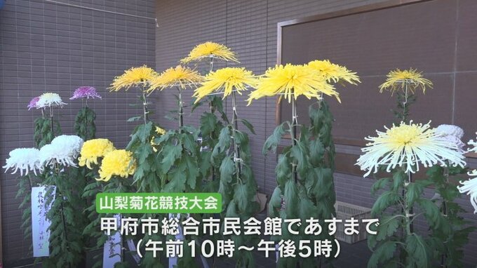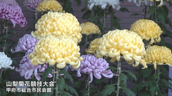 丹精込めて育てられた大輪の菊の展示会が甲府市で開かれています。