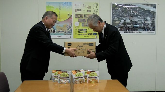 SDGsの取組です。食品ロスを削減するとともに、生活困窮者を支援できればと、災害用に備蓄していた食材がフードバンク団体に渡されました。提供したのは、国立印刷局です。