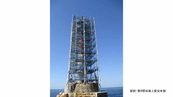 第9管区海上保安本部によりますと、一里島灯標では7月~12月まで工事が行われる予定で、約17mの高さの足場が組まれていました。7日夕方までは足場がありましたが、8日午前6時半ごろ、流出しているのが分かったということです。現在、灯標の損傷等も含めて詳細を確認しています。