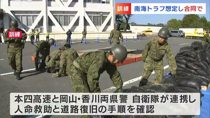 南海トラフ地震を想定した救助と復旧の訓練です。本四高速が警察・自衛隊と連携した合同訓練を行いました。