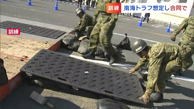 このうち道路復旧の訓練では、地震で発生した道路の段差を自衛隊員が土のうを使って補修し、車両が通行できるようにしました。