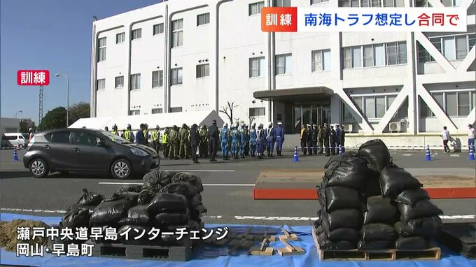 岡山県早島町で行われた南海トラフ地震の訓練は、震度6強の地震で、高速道路での多重事故と道路の損傷が発生したことを想定したものです。