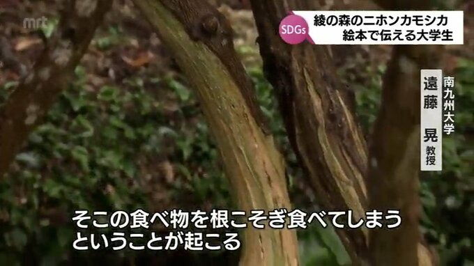 「(カモシカが)今まで生きてなわばりを作って暮らしていたところにシカがたくさん入り込んできて、そこの食べものを根こそぎ食べてしまうということが起こる」