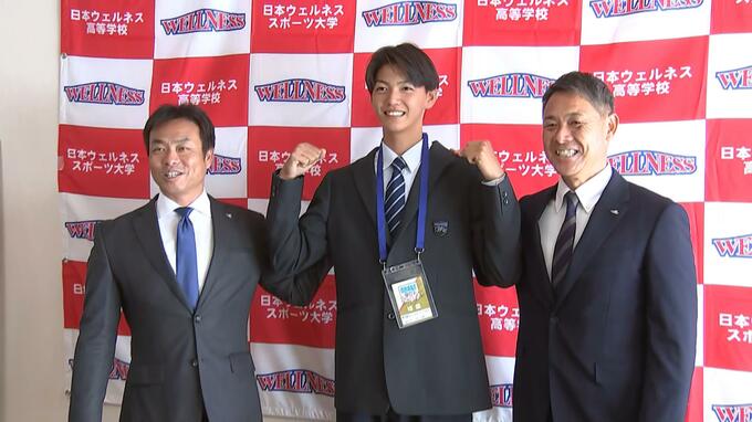 楽天イーグルスにドラフト7位で指名された日本ウェルネス宮城高校の大内誠弥投手に8日、指名挨拶が行われました。